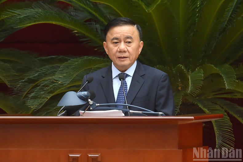 会議で発表するファン・ディン・チャック党中央内政委員会委員長