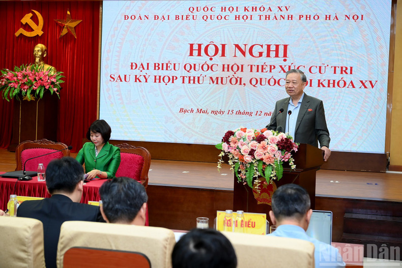 トー・ラム書記長と代表団が、第15期国会第10会期後にハノイで行われた有権者との会合に出席した。