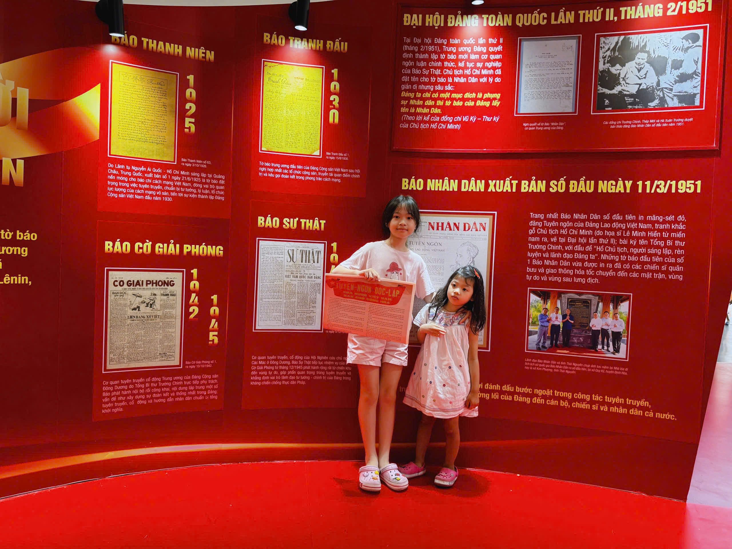 Tran Ha Anh and her younger sister share their happiness after receiving Nhan Dan Newspaper's special supplement marking the National Day (September 2).