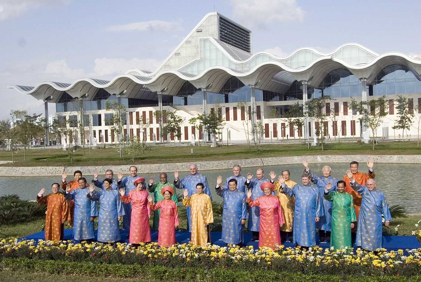 APEC Leaders in Vietnamese traditional long dress at the 14th APEC Summit (in 2006 in Ha Noi). (Photo: APEC)
